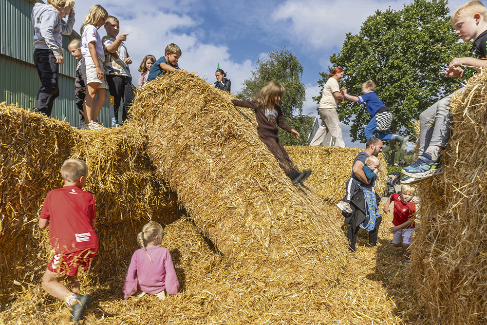 Børnene havde mulighed for at klappe en ko eller hest, bage snobrød og hoppe i halmballer.