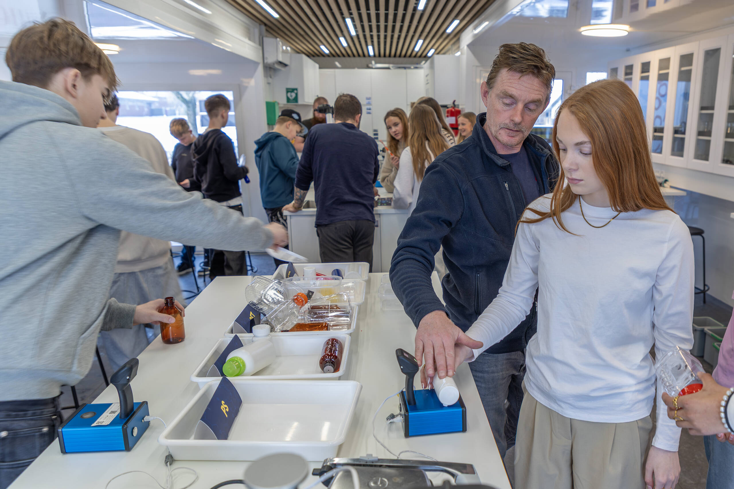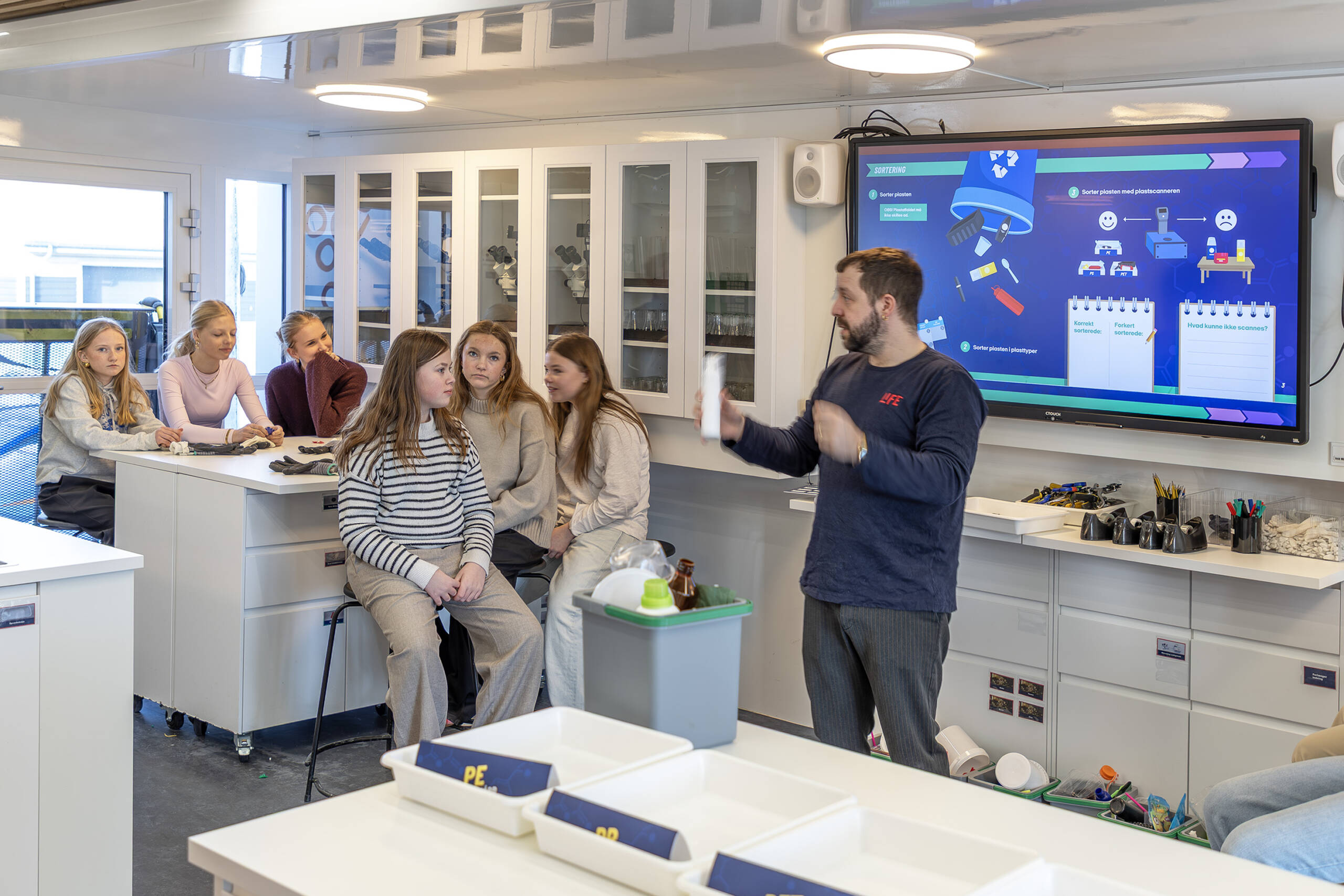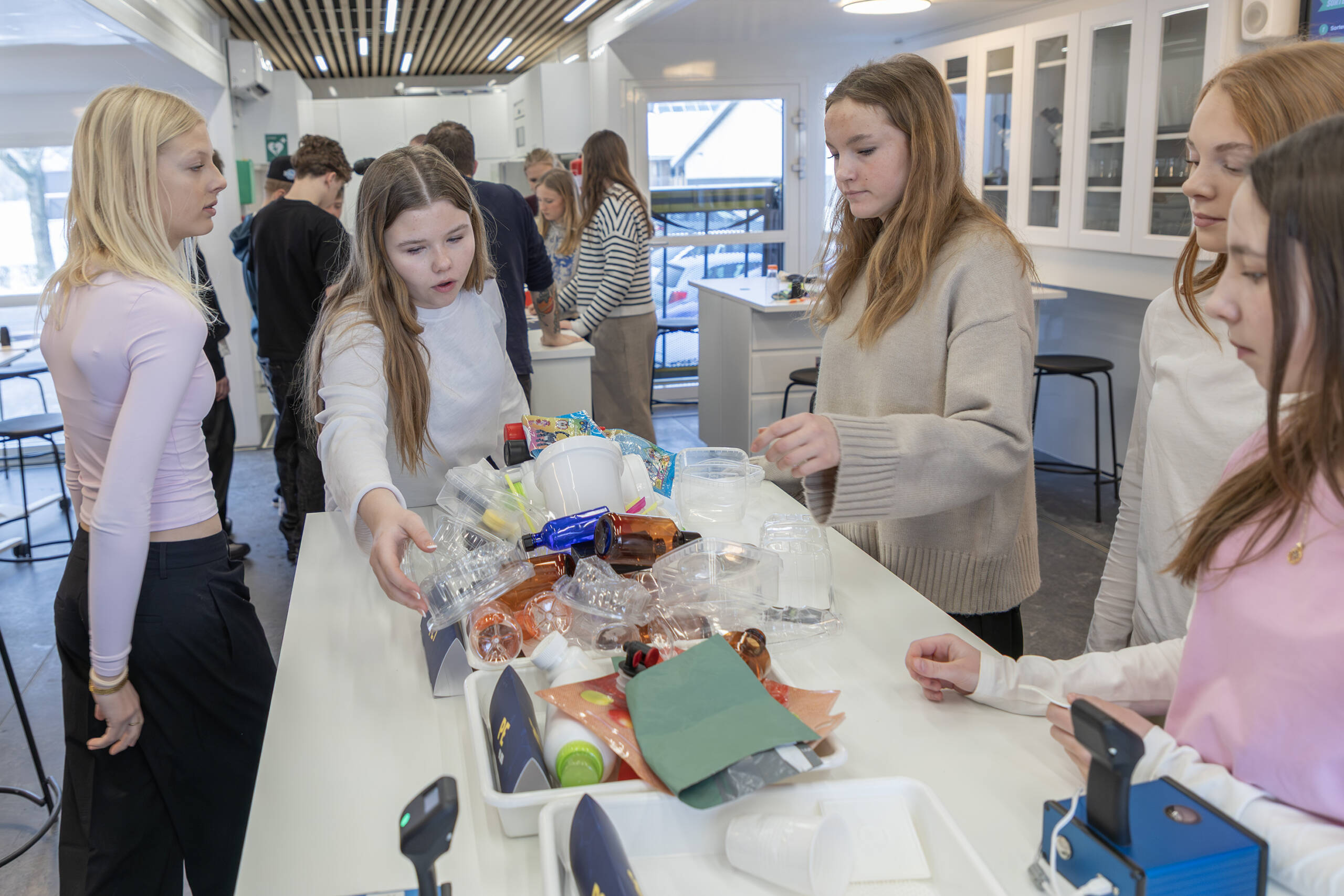 Med de scannere, laboratoriet havde med, kunne eleverne se, hvordan avanceret teknologi gør det muligt at sortere plast helt præcist. Resultatet er, at langt de fleste plasttyper kan genanvendes, mens kun en minimal del behøver at blive destrueret. ■
