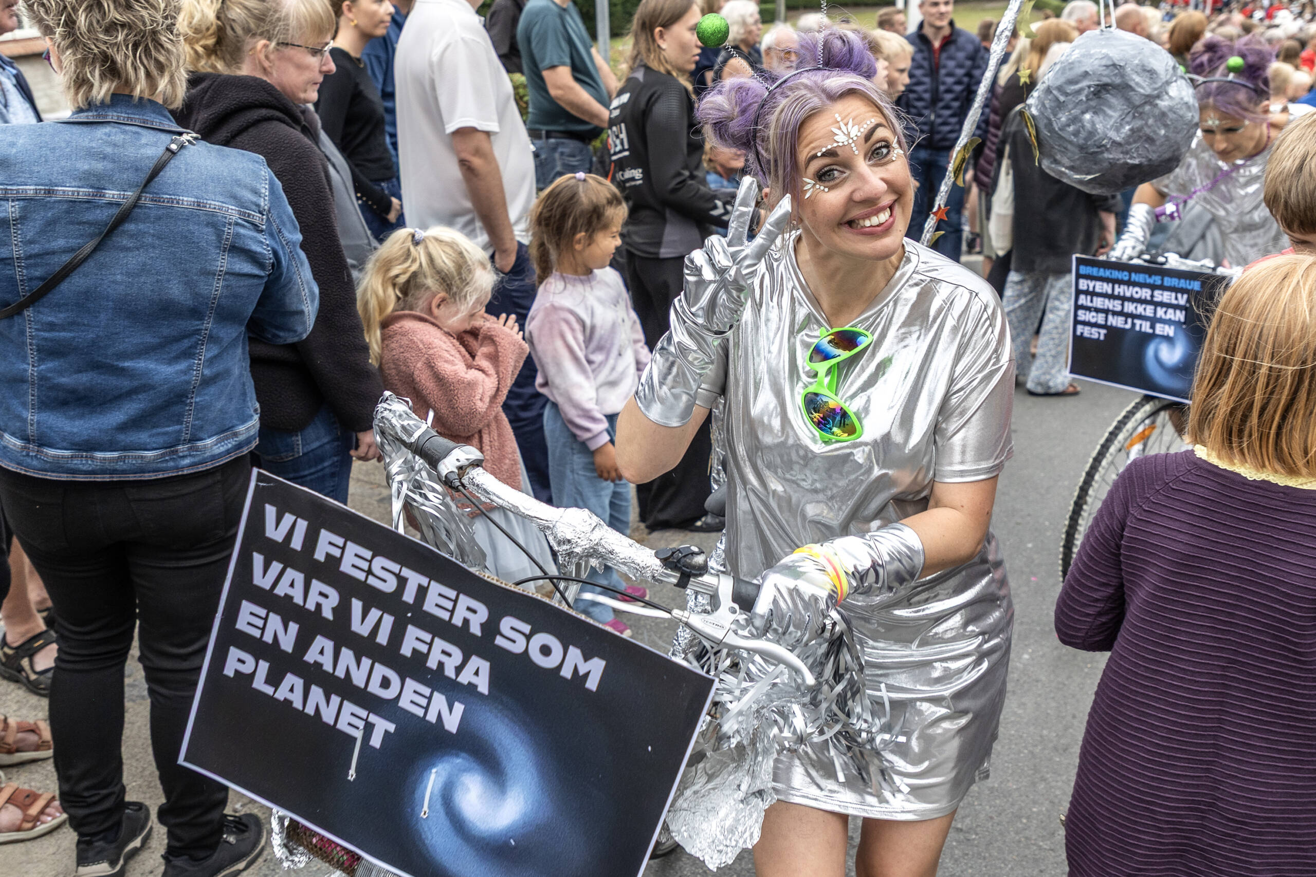 Rundt i gaderne stod tusindvis af tilskuere tæt pakket for at se et visuelt spektakel i fantasifulde kostumer og pyntede cykler, som bliver beskrevet som “Broagers svar på karneval i Rio”. ■