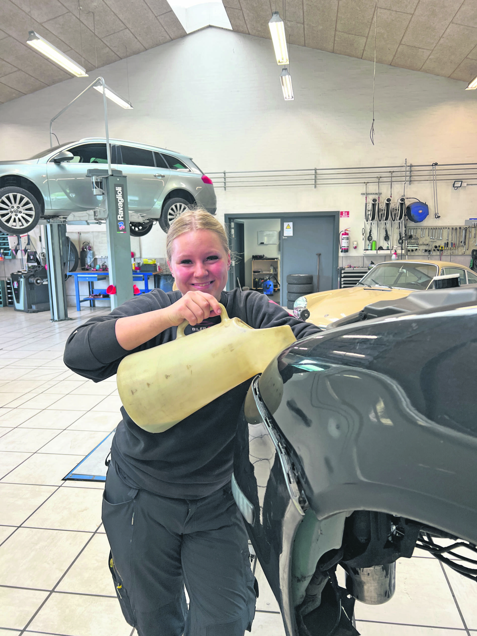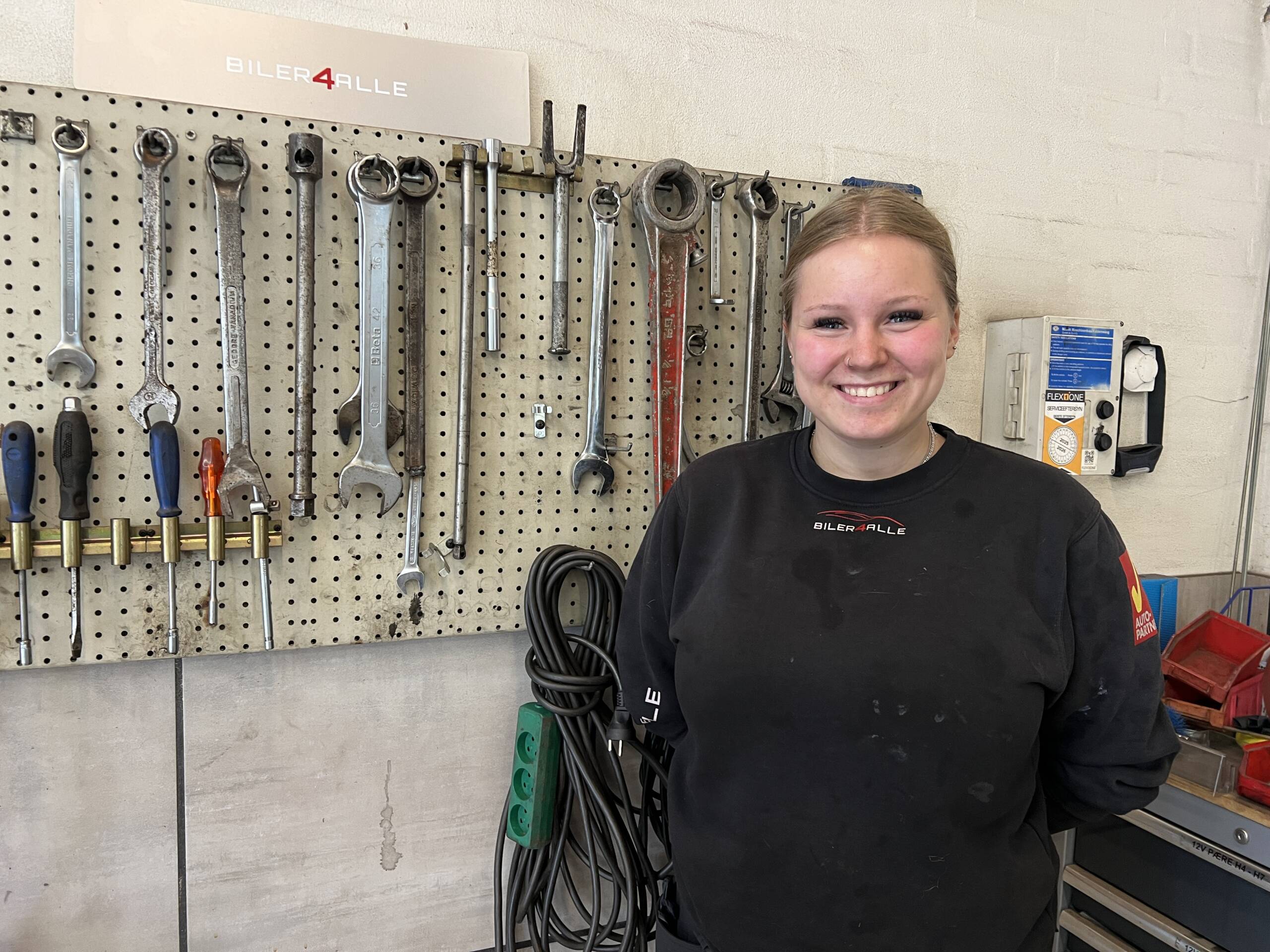 21-årige Rebecca Ejsing er mekanikerlærling hos Biler4alle ved Claus Bang-Rosenberg og Brian Schmidt, og det er hun rigtig glad for.