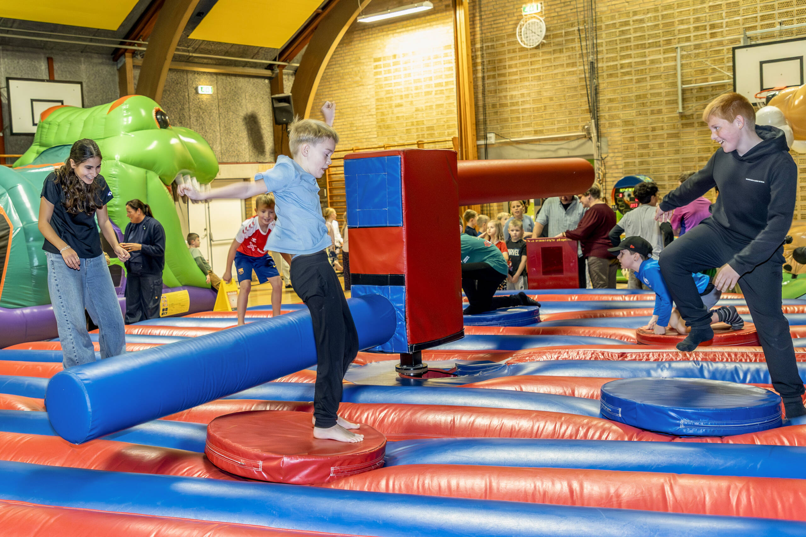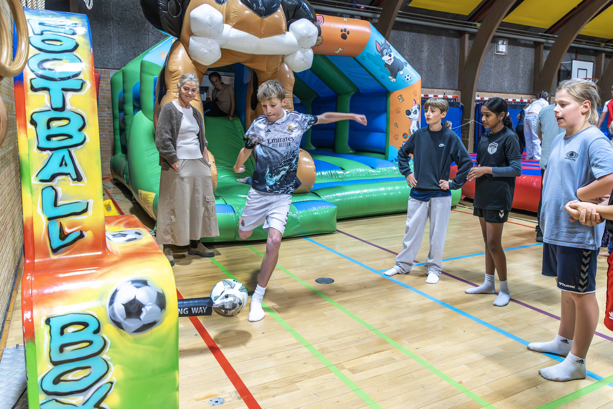 Sportshallen var forvandlet til et stort aktivitetsrum, hvor eleverne kunne boltre sig med leg og sjov.
