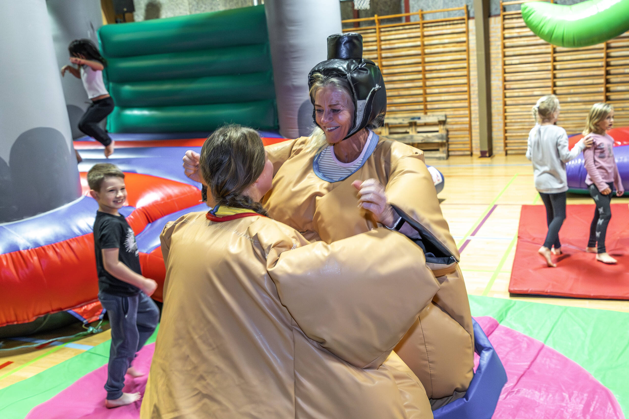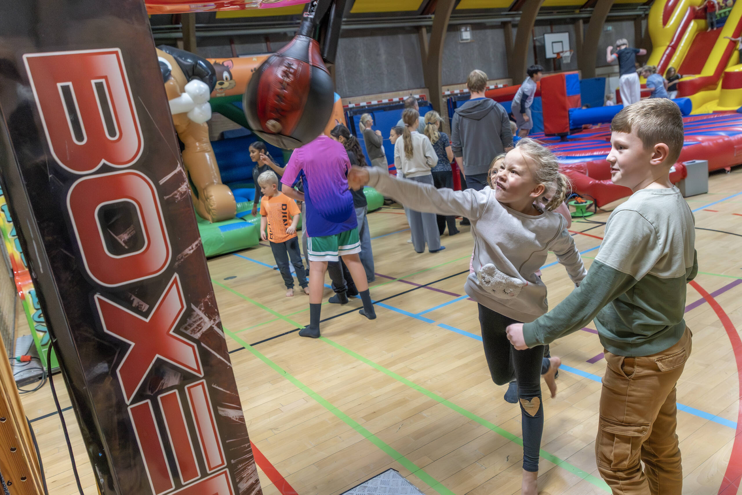 Børnene boltrede sig med leg og sjov i Sportshallen.