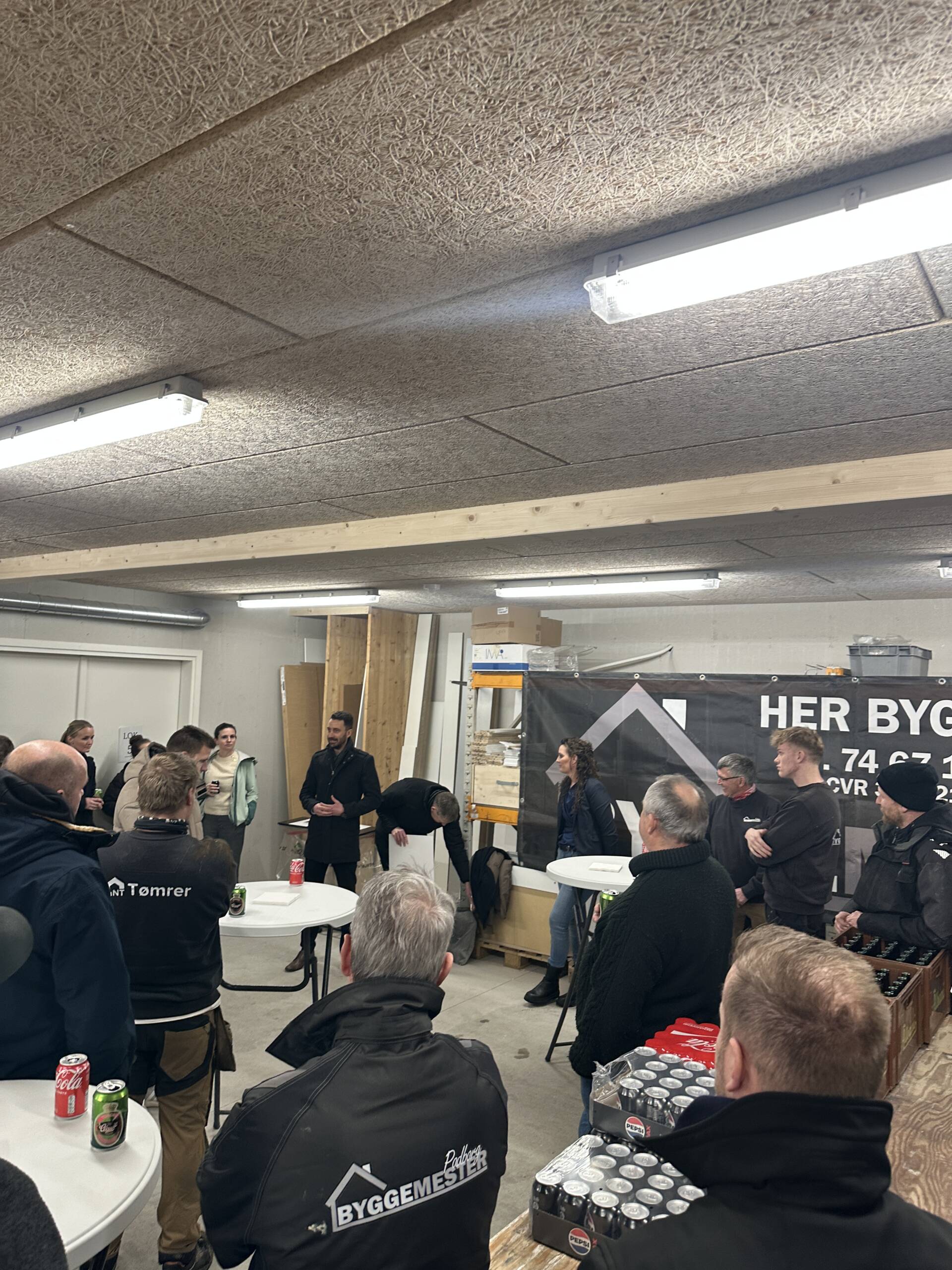 Ved overrækkelsen fremhævede Vivi Tygesen fra Byggemester N.T. det stærke fællesskab i virksomheden og roste både Eskild og resten af tømrerteamet: